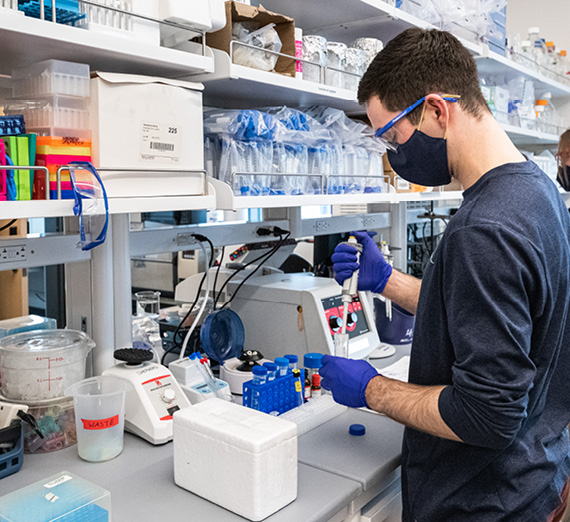 Mechanical Engineering Assistant Professor Harman Khare, elated to have a fume hood in his lab, cites the biggest contribution of the Bollier Center as the number of students he and others can have working in their research labs at any given time.